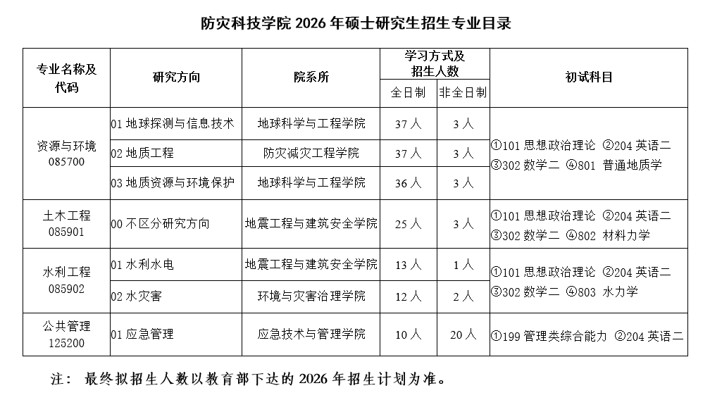 防灾科技学院2026年硕士研究生招生专业目录