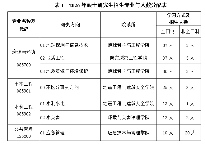 2026年学校硕士研究生招生专业与人数见表1,最终招生人数以教育部下达的招生计划为准。